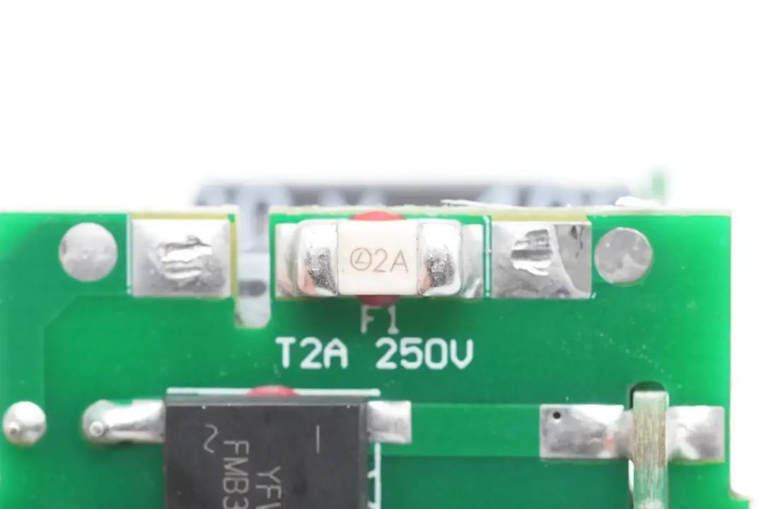 Close up of surface mount fuse, rated current 2A.