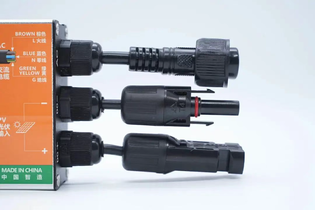 The upper right side is the AC output terminal block, and the lower side is the DC MC4 connector.