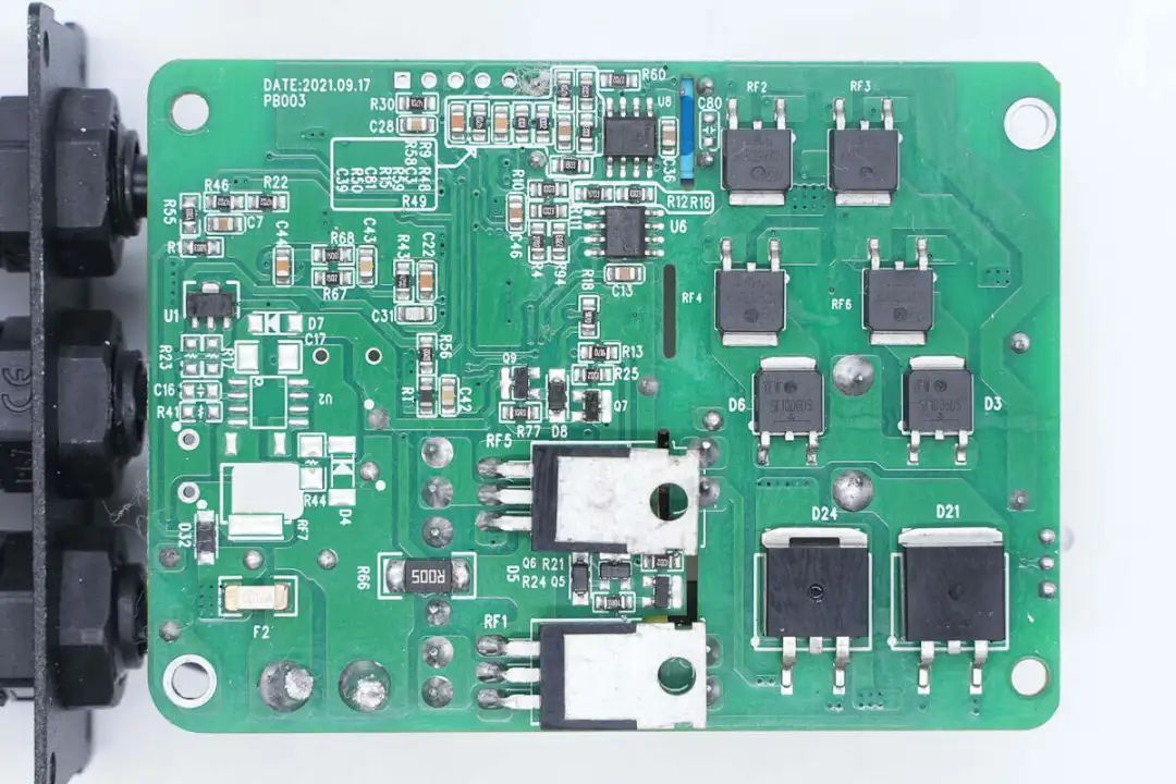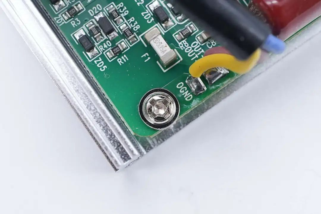 Unscrew the fixing screws and remove the PCBA module. There is also a thermal pad between the power device and the housing for heat dissipation.