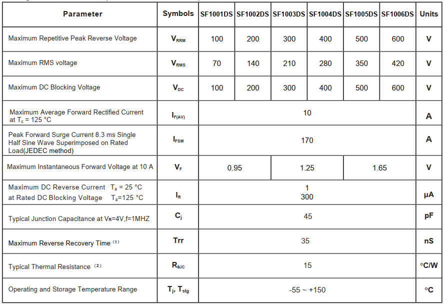 Two diodes from YFW Yufengwei, model SF1006DS, are ultra fast recovery diodes with a specification of 600V 10A and packaged in TO-252. YFW Youfeng Micro Brand