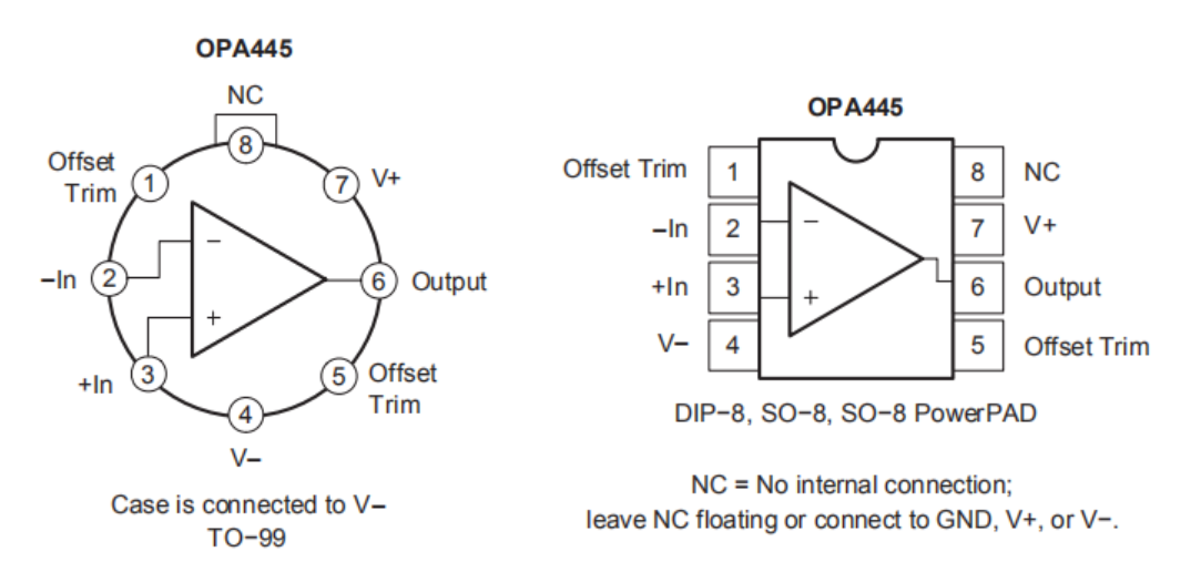 OPA445 is a single-chip operational amplifier capable of operating with a power supply of up to ± 45V and an output current of 15mA. It is suitable for various applications that require high output voltage or large common mode voltage fluctuations.