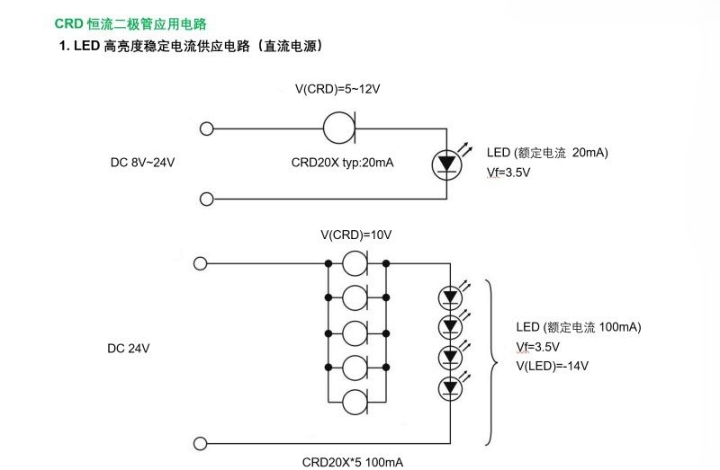 The following is the application circuit of CRD constant current diode