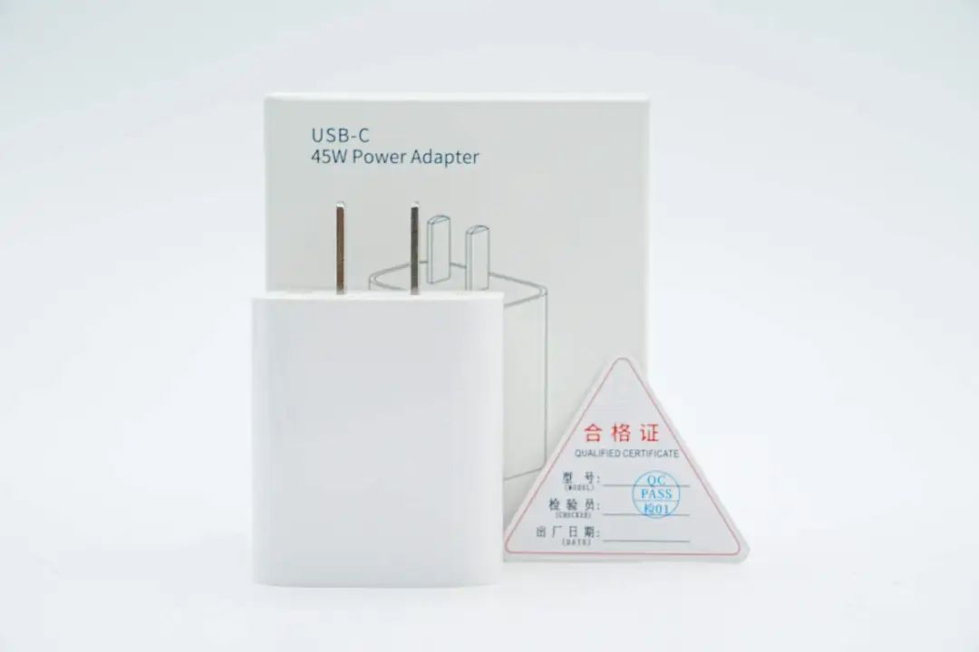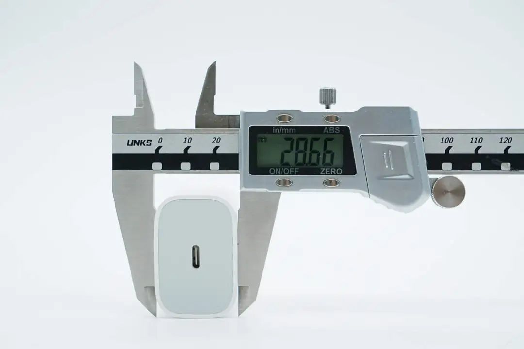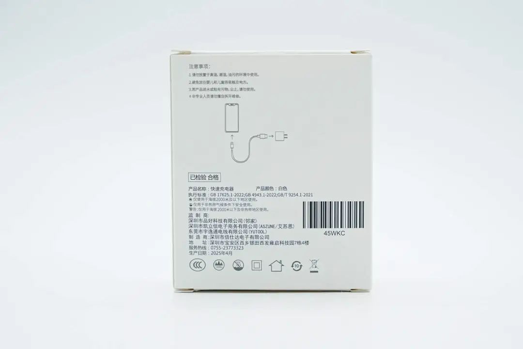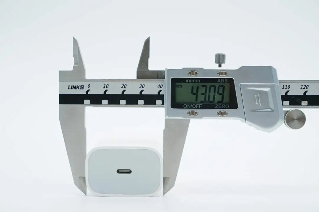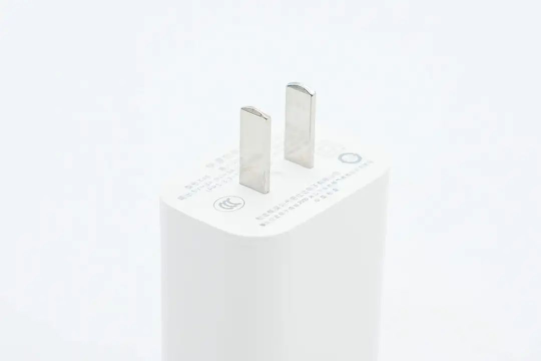 The Beishida charger adopts the same appearance style design as the Apple 20W fast charger. The input end and side of the body are integrated with a white shell, with a high gloss surface treatment. At the same time, the transition on both sides is rounded, and the output end shell is gray in color.