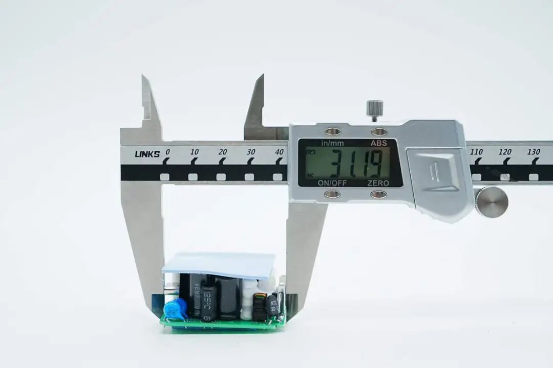 Removing the thermal pad, the front of the motherboard is equipped with delay fuses, common mode inductors, high-voltage filtering electrolytic capacitors, transformers, output filtering solid-state capacitors, and other devices, which are reinforced with glue. At the same time, the primary stage is equipped with Maillard isolation insulation.