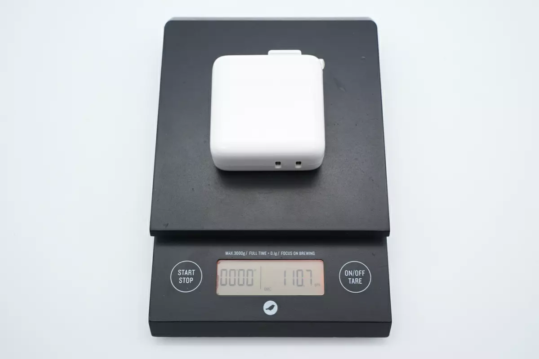 Additionally, the net weight of the charger was measured to be approximately 111g.