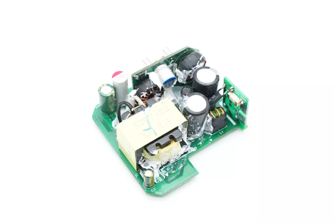 Clean the adhesive on the surface of the PCBA module. Take a look at the front of the PCBA module and solder a small board in the upper left corner for power supply, which includes the high-voltage filter capacitor and transformer. Insert isolation plates into the slots between the first stages for insulation, with a secondary protocol board at the bottom. Weld the voltage reducing circuit and USB-C socket, as well as the output filtering capacitor.