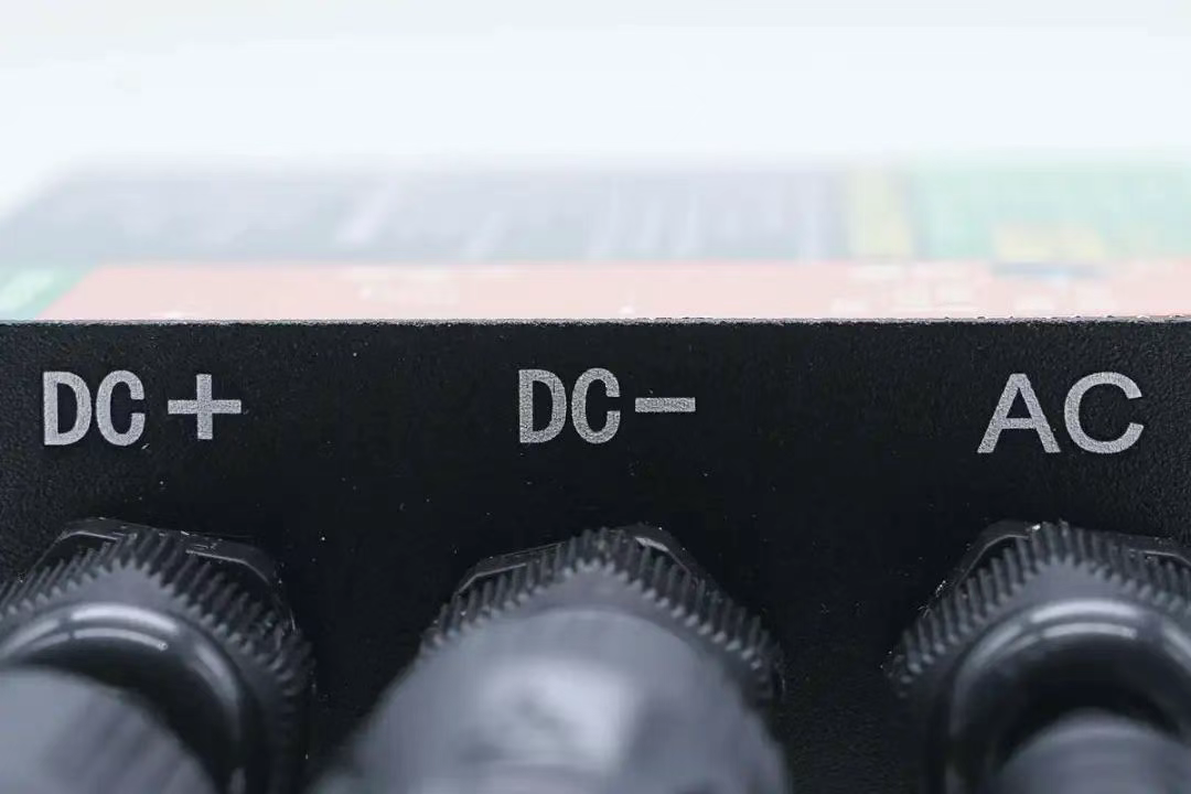 The upper right side is the AC output terminal block, and the lower side is the DC MC4 connector.