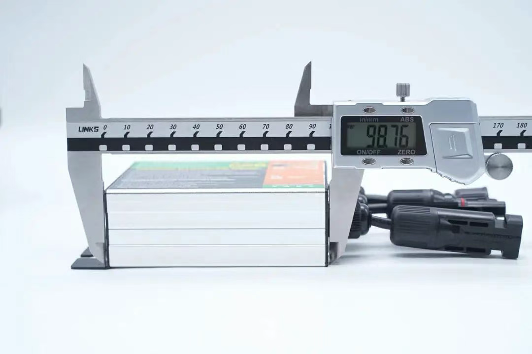 The length of the inverter housing was measured to be approximately 98.8mm.