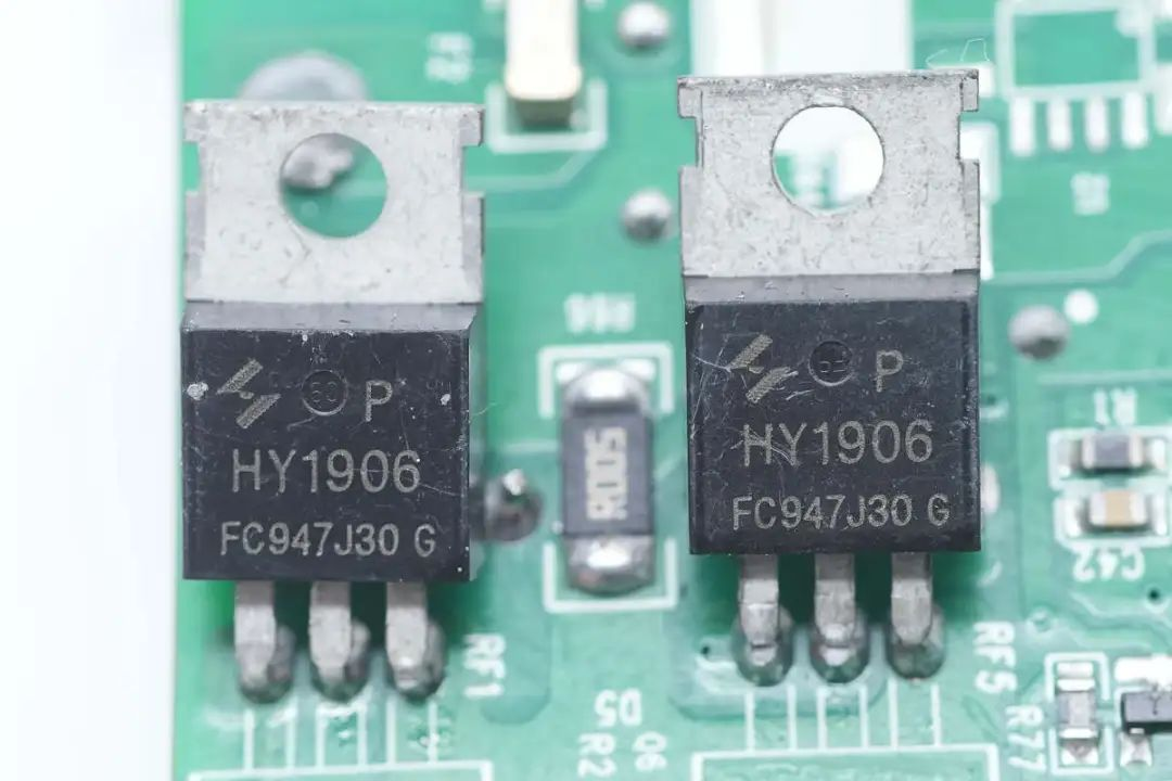The boost switch transistor is from HUAYI Microelectronics, model HY1906P, NMOS, with a withstand voltage of 60V and a resistance of 6m Ω, packaged in TO220FB-3L.