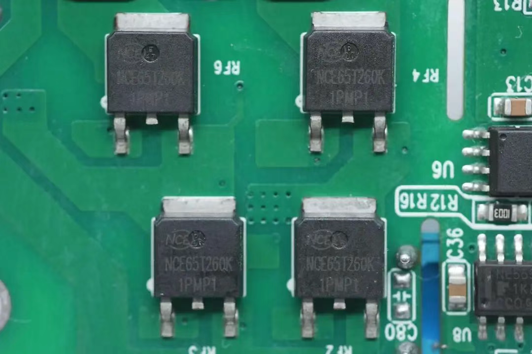 The four switching transistors used for output modulation are from New Clean Energy, model NCE65T260K, NMOS, withstand voltage 600V, conductivity 220m Ω, and packaged in TO-252.
