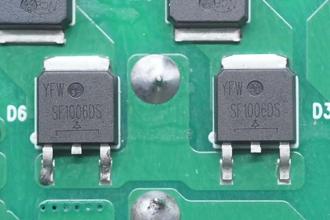 Two diodes from YFW Yufengwei, model SF1006DS, are ultra fast recovery diodes with a specification of 600V 10A and packaged in TO-252. YFW Youfeng Micro Brand
